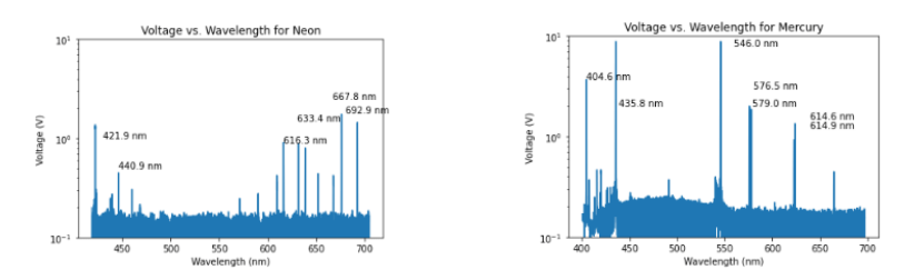Summary: Using a spectrometer, the spectral emissions of elements like hydrogen, helium, mercury, and neon were captured and analyzed. These gaseous elements, stored in a Geissler tube, were excited via voltage to induce photon emissions within the range of 400nm to 700nm. Through Python, the collected data was processed and compared to the known emission values from the NIST database, allowing for a detailed analysis of the observed emissions.